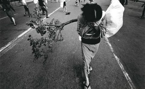 Vagando liberamente per le strade del Giappone ha tentato di collezionare istanti di quotidianità che potessero dare una spiegazione valida a questo forzato miscuglio tra culture e all'invasione americana della sua terra.