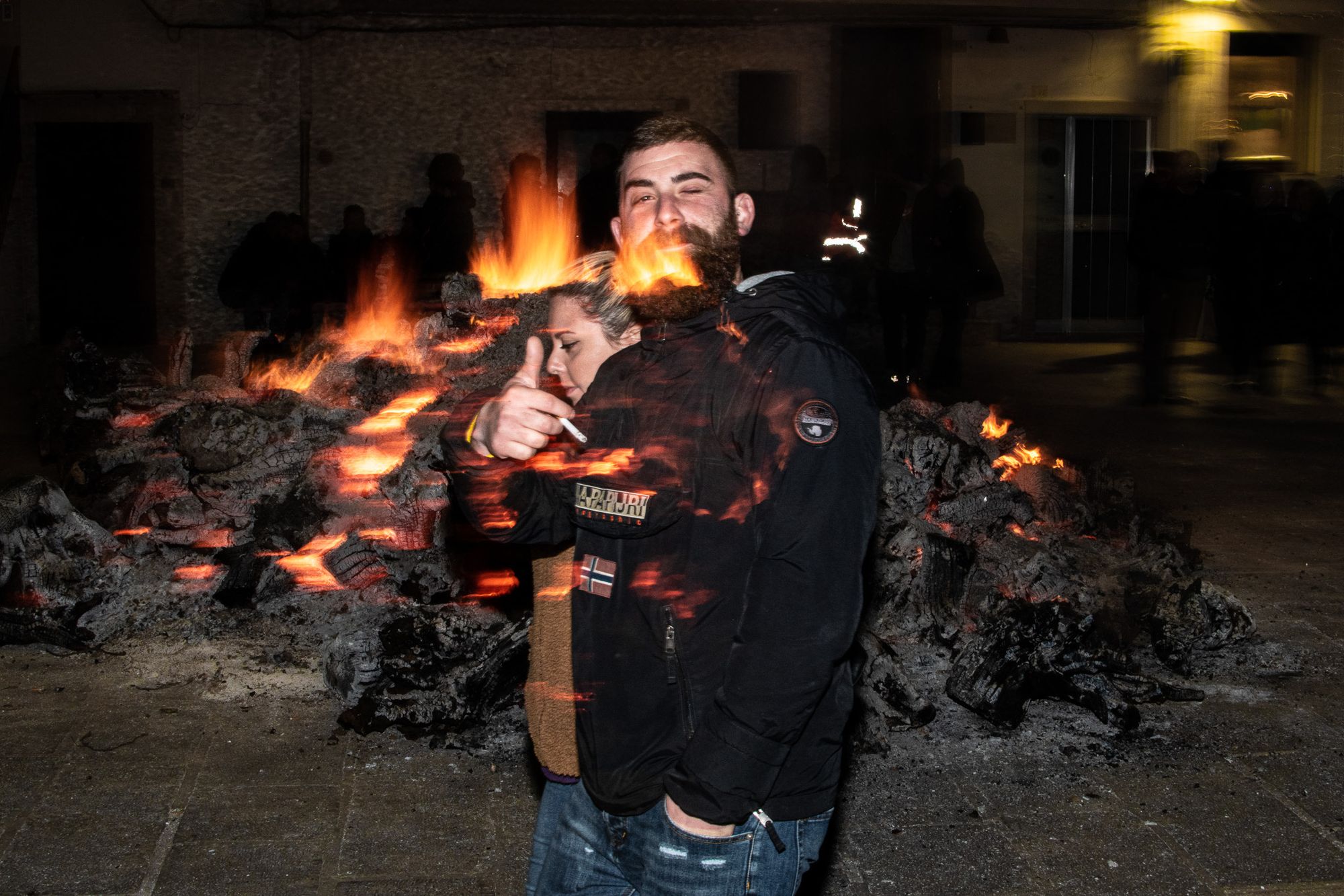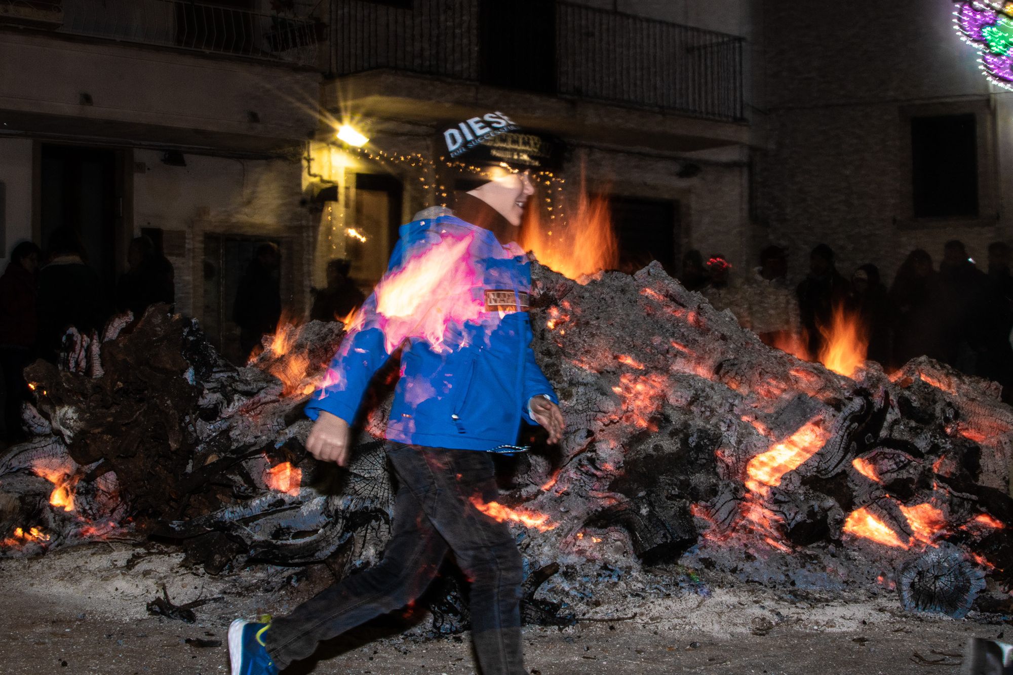 In questa serie di fotografie realizzate da Alessandro Sardella, dal nome "Fuoco cammina con me", la tradizione è nel pieno della sua essenza: il fuoco abbraccia, sontuosamente, le figure diafane dei festanti nelle sue lunghe e tentacolari braccia.
