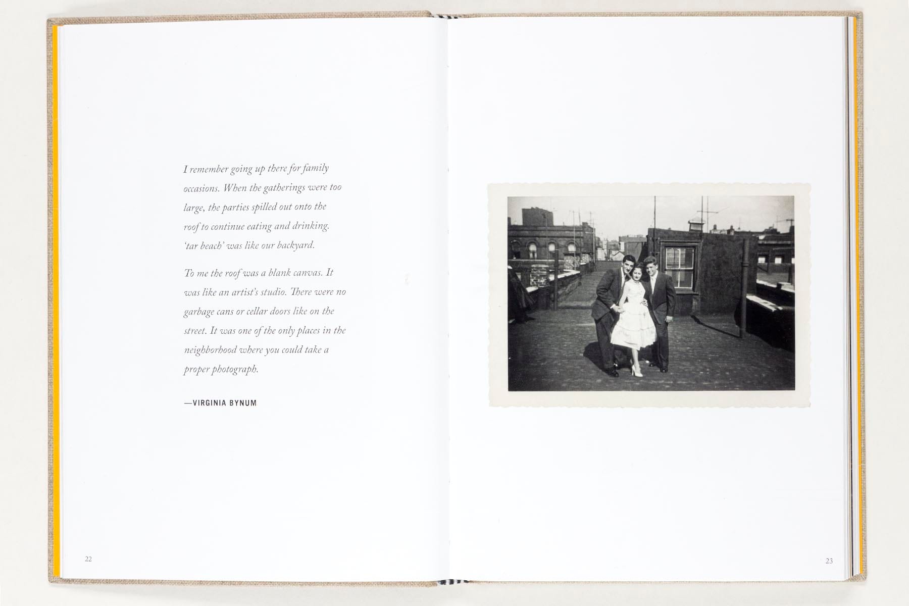 Parte da lì una lunga ricerca, fatta di interviste e archivi fantastici, poi approdata, nel 2020, nel libro Tar Beach: Life on the Rooftops of Little Italy, edito Damiani. Una raccolta vernacolare bellissima, che racconta intere generazioni (dagli anni 40 ai 70) e che unisce saldamente la famiglia al ricordo collettivo.